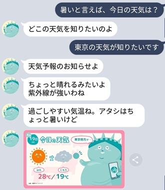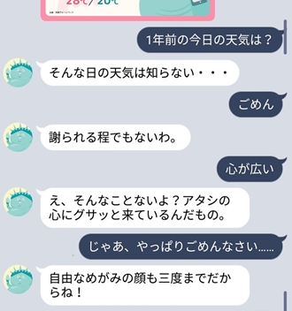 自由なめがみとは天気予報のほかにもいろいろなお喋りを楽しむことができます。