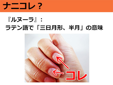 『ルヌーラ』:ラテン語で「三日月形、半月」の意味。日本語では「爪半月(そうはんげつ)」と言い、やはり月の形に由来する。