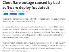 Cloudflare、サービス障害は攻撃ではなくソフトの配備ミスと説明