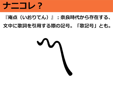 『庵点』:いおりてん。奈良時代から存在し、現在は主に文中に歌詞を引用する際の記号として利用されている。「歌記号(うたきごう)」とも。