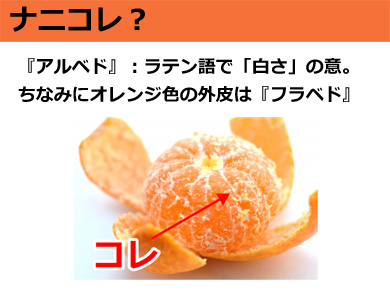 『アルベド』:ラテン語で「白さ」の意。かんきつ類の果皮の内側にある白い繊維状の組織、いわゆる“白い筋”にもこの言葉が使われている。