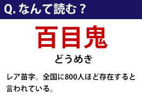 『どうめき』:レア苗字。全国に800人ほど存在すると言われている。