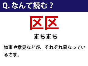 『まちまち』:物事や意見などが、それぞれ異なっているさま。