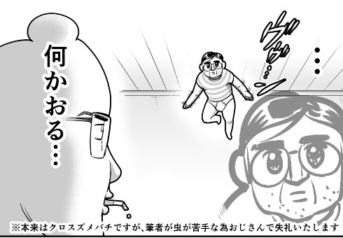 家の中にハチが入り込んできた! ハチとの緊迫のバトルを描いた漫画が、「作者が虫が苦手なのでハチをブリーフのおっさんに擬人化して描いた」結果、シュールな笑いを誘っています。実際は大変なシチュエーションだけど……。