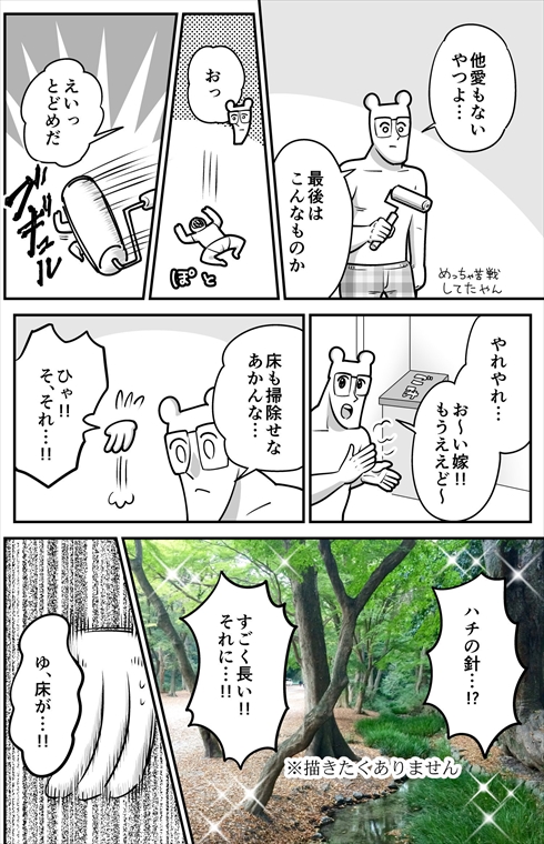 家の中にハチが…… 「ブリーフのおっさんに擬人化されたハチ」とのバトル漫画がシュールの極み