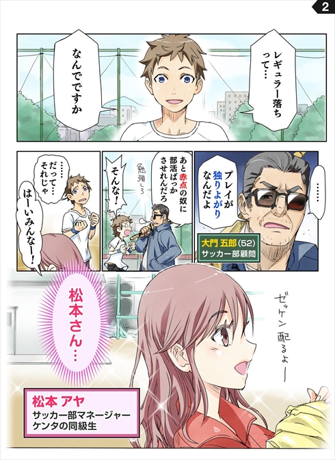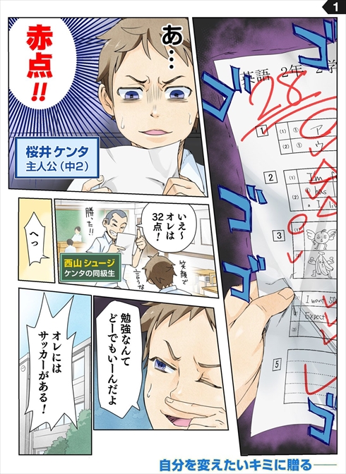 主人公のケンタはテストは赤点、サッカー部ではレギュラー落ち、意中の女子にも告白できず……とどんよりな日々を送っていました。そんなときに勉強ができてサッカー部のエースで彼女もいる先輩が秘密を教えてくれます。それはメイプルM……ってすごいデジャ・ヴだこれ。