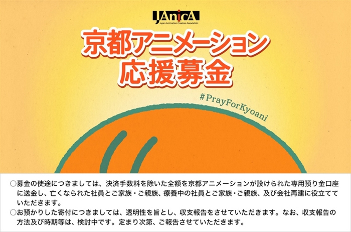 ヤフーと日本アニメーター・演出協会(JAniCA)は7月26日、“京都アニメーション応援募金”の窓口開設を発表しました。