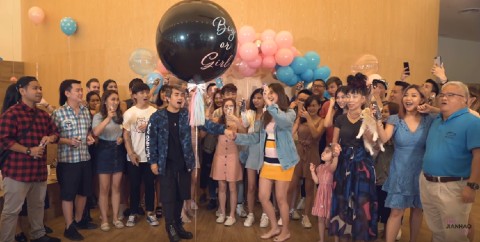 人気YouTuber、JianHao TanさんのGender Reveal Partyの動画。風船に紙吹雪を仕込んでいる。動画の再生回数は200万超