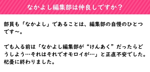 Q:「デイズネオ」になかよしが加わりましたが、なかよし編集者誰一人として投稿作品にコメント書いてなくないですか?