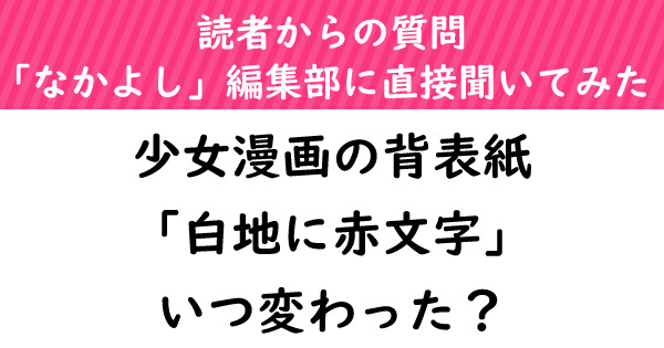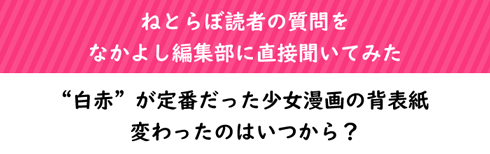 そこで、ねとらぼのTwitterアカウントを使って質問を募集し、なかよし編集部に回答してもらおう、というのが本企画。今回は「いつから少女漫画コミックスの背表紙が白赤ではなくなったのか」「『りぼん』『ちゃお』との違い」などについて伺いました。