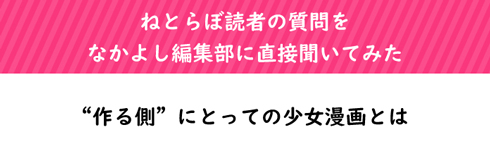 そこで、ねとらぼのTwitterアカウントを使って質問を募集し、なかよし編集部に回答してもらおう、というのが本企画。今回は「少女漫画作りで気を付けていること」などを伺いました。