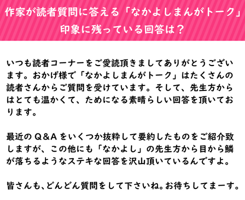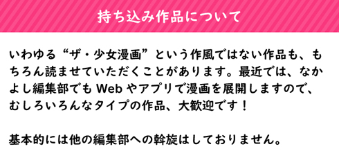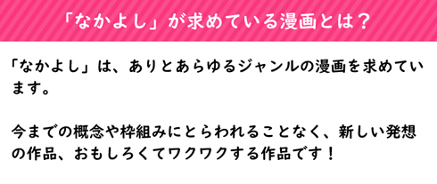 - Q:「なかよし」が求めてる漫画ってどんなマンガですか??