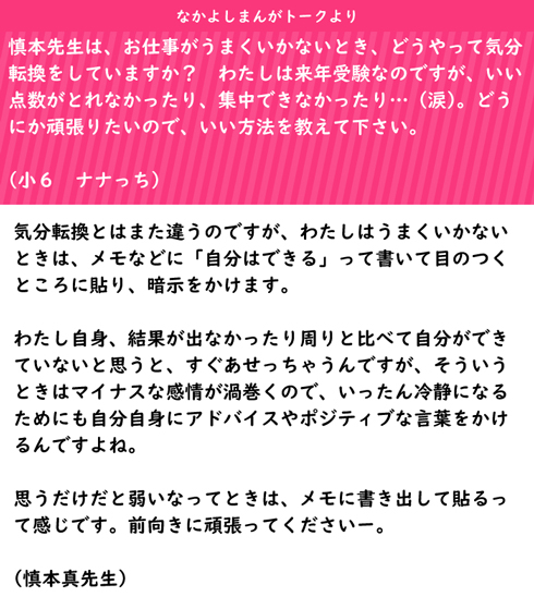- Q:「なかよし」の漫画家さんは学生でデビューや賞を取る方多かったと記憶にあるのですが、学業との兼ね合いはどのようにされているのですか?(編集側の指導など)