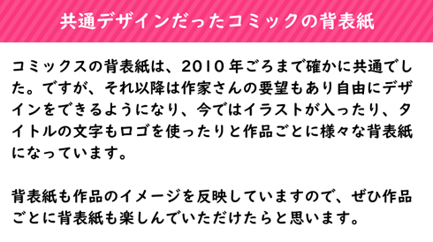 - Q:コミックの背表紙の歴史とかこだわりとか知りたいですー。90年代は共通でしたよね?
