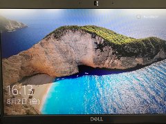 パソコン画面に日付・時間と一緒に現れたのは、とても美しい海に囲まれた島の岬……のはずですが、その岬の形がどう見ても鮭の切り身です。緑が茂っている部分もバジルソースか青のりに見えてきて、お腹が減ってきます。一度見えたらもうそれにしか見えなくなる。