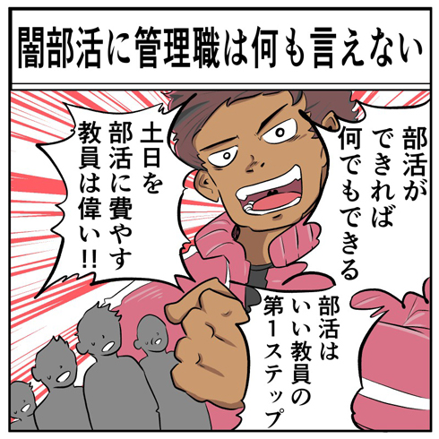 要するに、教員の中には職場で輝ける場所が部活しかない人たちがいて、その人たちは部活を楽にされると困ってしまうんだよ。そこで頑張っていることが、彼らのアイデンティティーだから。