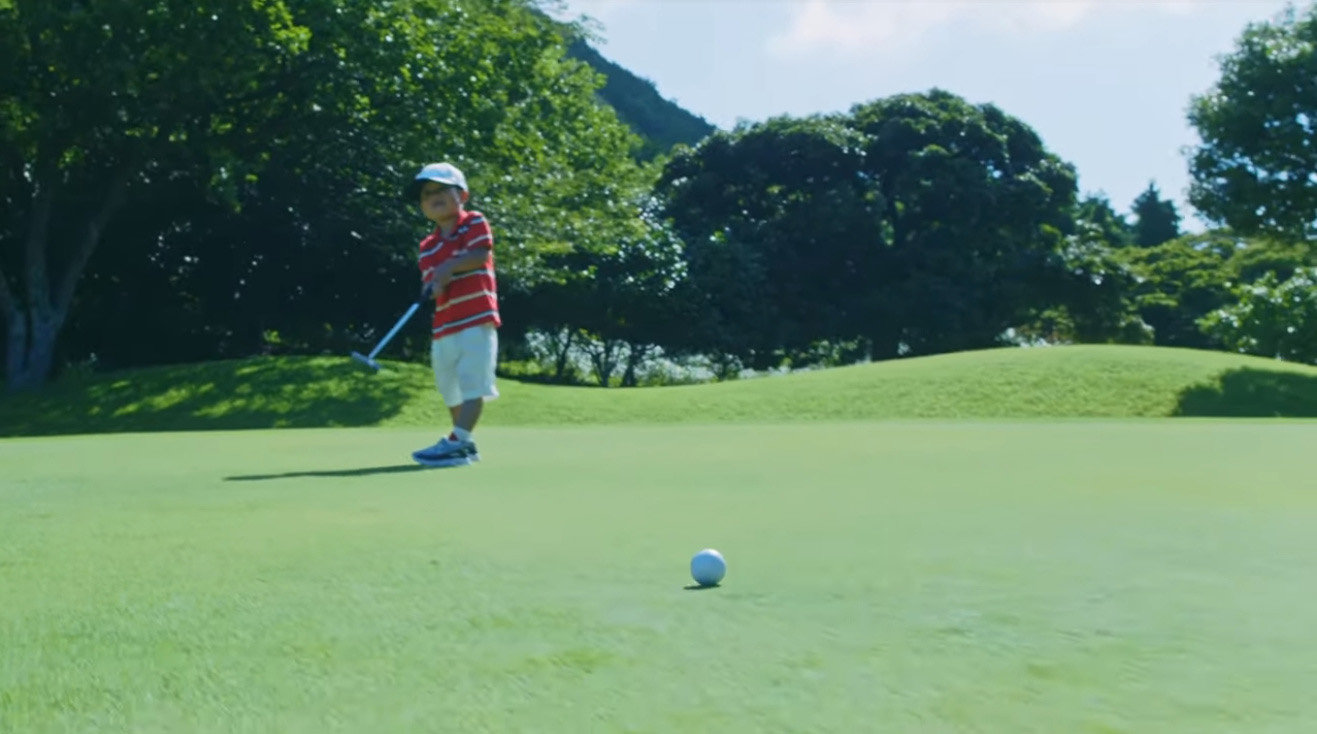 クラブを握るのさえまだ危うい、かわいい少年が……超ロングパットをズバンズバン決めます。何度もミスなく。うそ、すげぇ。