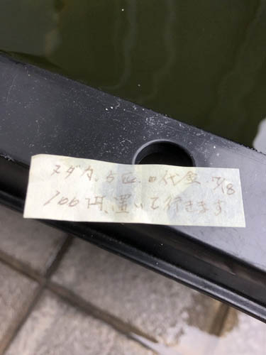 メダカを盗んだ人物が置いて行った書置き