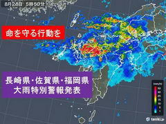 28日午前5時50分、気象庁は佐賀県、長崎県、福岡県に大雨特別警報を発表しました。これまでに経験したことのないような大雨となっているところがあります。何らかの災害がすでに発生している可能性が高く、警戒レベル5に相当する状況ですので、最大級の警戒をしてください。