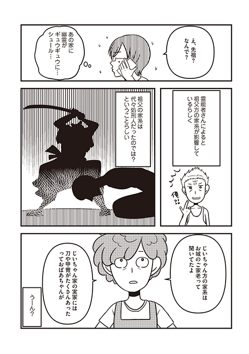 ―― 第3章「実家を除霊する」では、実家を除霊すると決めるまでのいきさつと、その後の生活が描かれています。本の中では最終章になりますが、このエピソードがもともとpixivに投稿されていたものですよね