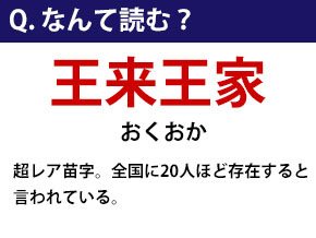 『おくおか』:超レア苗字。全国に20人ほど存在すると言われている。