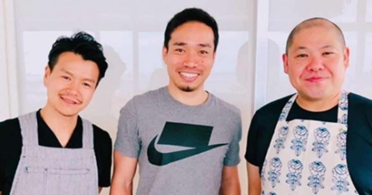 トルコ到着時の三瓶さん。長友選手、加藤シェフと3ショット(画像は長友佑都Instagramから)