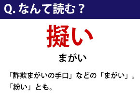 『まがい』:「詐欺まがいの手口」などの「まがい」。「紛い」とも。