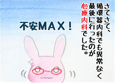 身体の検査に異常はなく、最後に行ったのが心療内科でした。ここでも原因が分からなかったらどうしよう、治らない奇病だったらどうしよう、何も分からなくてうそつきと思われたらどうしようと不安はMAXです。