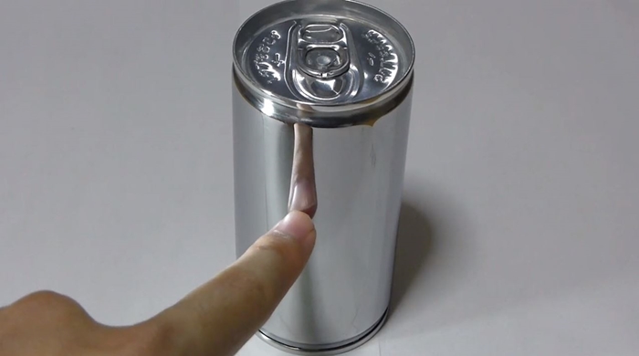 磨き終えたスチール缶はピッカピカのテッカテカ。缶にNdさんが指を近づけると缶の表面には指がしっかり映ったほか、人形を近づけると鏡並みの反射をみせています。総作業時間6時間20分34秒84を掛けて作り上げたこのスチール缶。Ndさんによると「腕の筋肉痛で一晩寝られなかった」そうです。