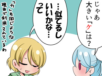 つまるところ、「ヶ」は「ケ」の小文字ではなく、「箇」や「个」から派生した記号です。そして、似ているということで、大きいほうの「ケ」も使われるようになりました。