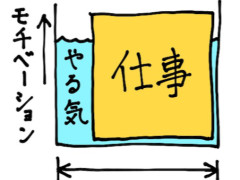 こちらの理論では「心」を三次元的な空間として捉えており、「やる気」は心に注がれた液体のようなイメージです。忙しい状態では心の中に巨大な「仕事」の塊が存在するため、お風呂に人が入ったときのように「やる気」の水かさが上昇し、創作意欲が高まるとしています。