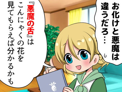 こんにゃくは、英語圏では「Devil's Tongue(悪魔の舌)」などと呼ばれています。その由来は食品の方ではなく、植物としてのこんにゃくが咲かせる「花」にあるといわれています。今回はちょっと怖いこんにゃくの花について解説します。