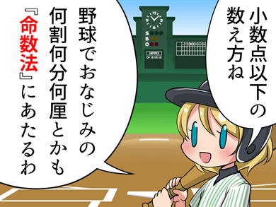 小数点以下の小さい数は、なかなか日常で触れる機会がないかもしれません。野球の打率などで出てくる「分(ぶ)」「厘(りん)」までは知っていても、それ以下はほとんど知られていないでしょう。それでは、さらに小さい数の数え方を見てみましょう。