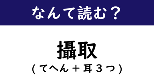 問題:「攝取」の読み方は?(てへん+耳3つ)