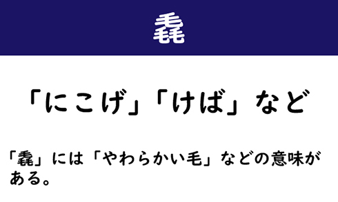 - 毳:むくげ、にこげ、けば