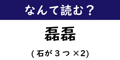 【昨日の問題】「磊磊」の読み方は?(石が3つ×2)