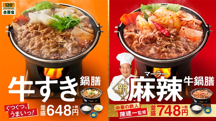 吉野家120周年記念に“究極の鍋”発売 進化した究極の「牛すき鍋膳」と「麻辣牛鍋膳」の2種類