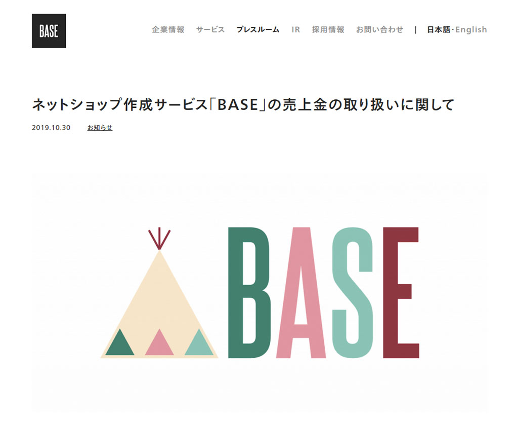 ネットショップ作成サービス「BASE」の売上金の取り扱いに関して