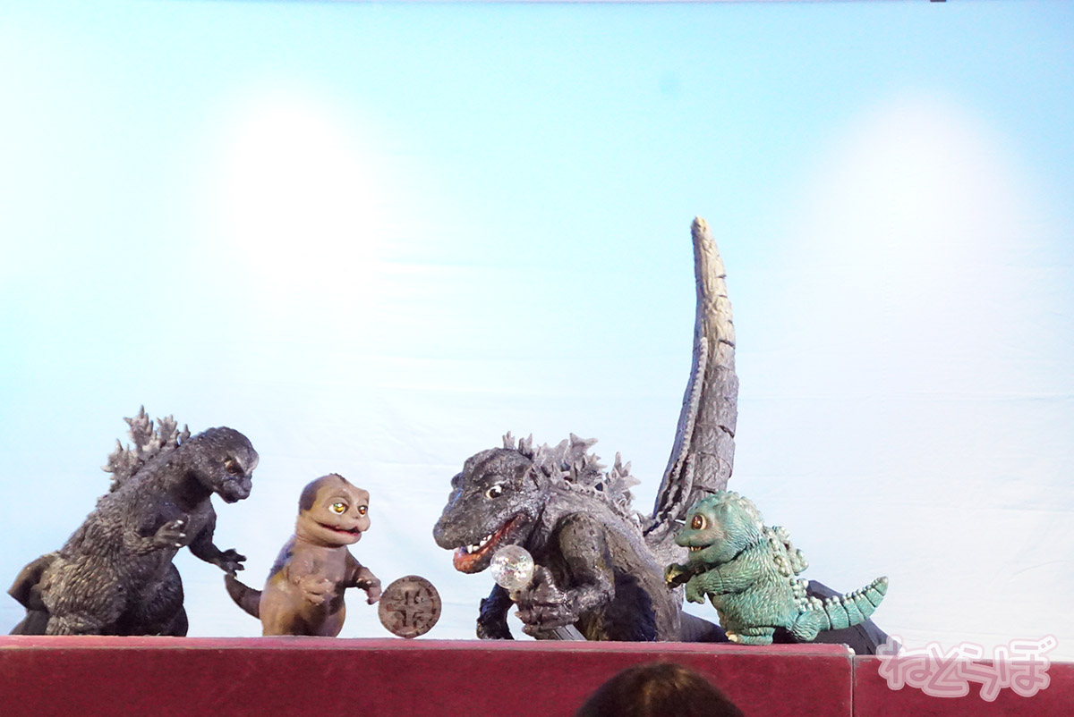 YouTubeの東宝特撮チャンネルで毎週金曜日に更新されている「ゴジばん」は、「ゴジラ」シリーズで14年ぶりとなる怪獣人形劇。ゴジラ・フェス2019では、東宝ツインタワービル2Fに特設の劇場が設けられ、生上映会が行われました。