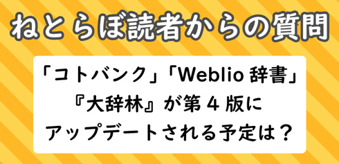 ――― ねとらぼ読者から質問を募集したところ、「『コトバンク』『Weblio辞書』の『大辞林』が第4版にアップデートされる予定は?」というものが。これらのサイトでは無料利用できるようになっていますね