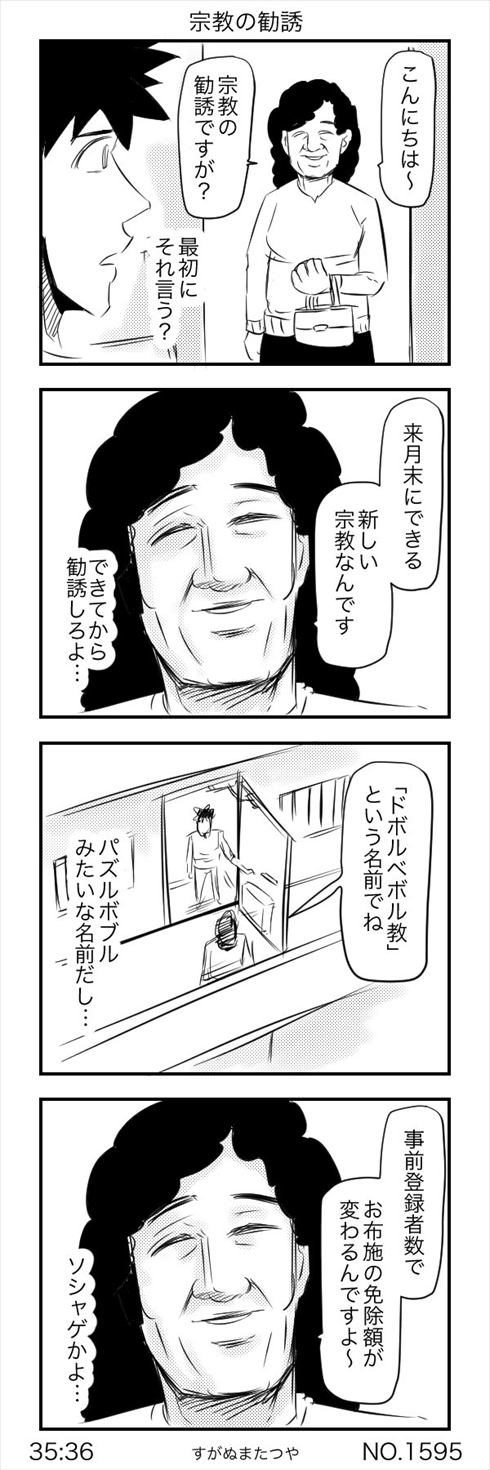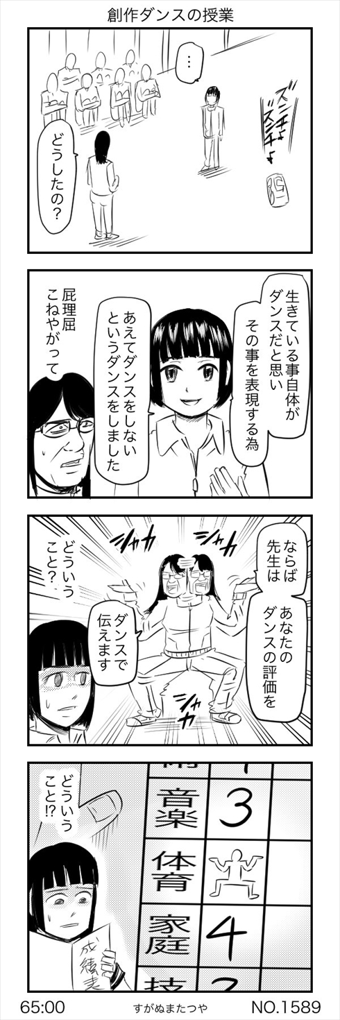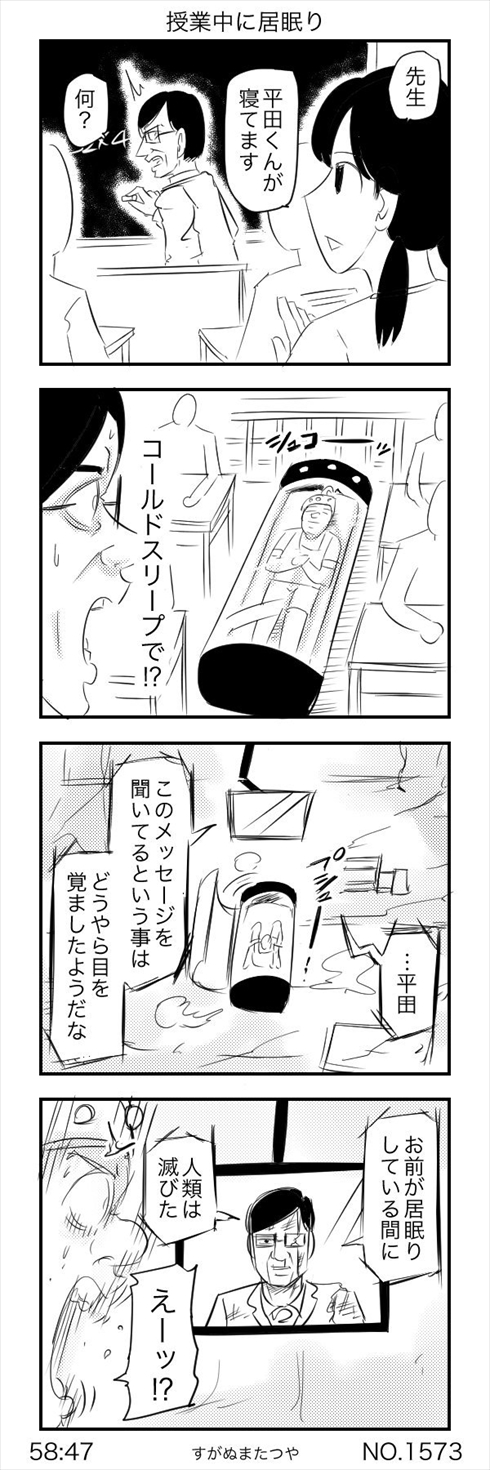 作者はすがぬまたつや(@sugaaanuma)さん。Twitterやnoteにシュールな4コマ漫画を投稿しており、他にも「授業中にコールドスリープで居眠り」「まだできていない宗教の勧誘」「創作ダンスの評価を創作ダンスで伝える教師」などじわじわくる味わい深い漫画を公開しています。