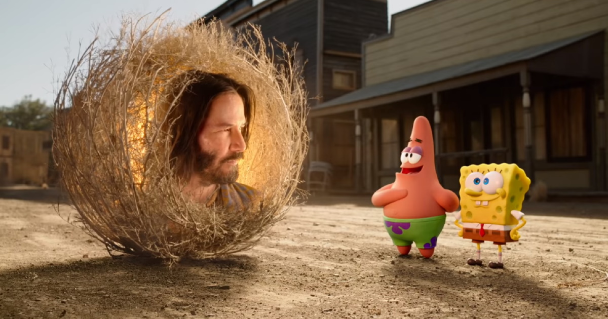 映画版「スポンジ・ボブ」にキアヌ・リーブスが実写で出演 回転草の中で光り輝きながら生首で登場