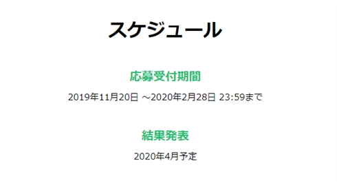 大賞発表は2020年4月ごろを予定。
