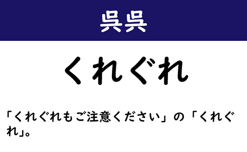 「くれぐれもご注意ください」の「くれぐれ」。