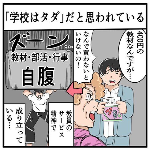 「学校はタダ」だと思ってる人はいまだにいるみたいで、お金を払うことにかなり抵抗を示すんだよ。その裏側では教員が自腹を切ってる。