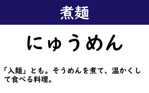 【昨日の問題】「煮麺」の読み方は?(「にめん」ではない読み方は?)