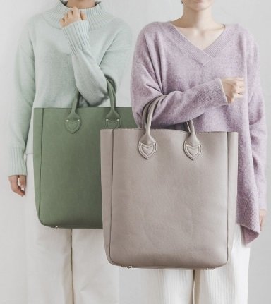 くすみカラーがかわいいトートバッグ(5200円/税別、以下同)。グリーン(左)とパープル(右)