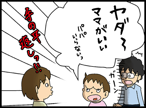 いつもは「パパがいい」といううちの子も、夫が出張などでしばらく家をあけて帰ってくると、すっかり「ママがいい」モードになっています。