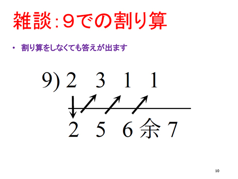 雑談:9での割り算は、割り算をしなくても答えが出る
