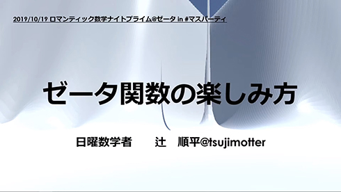 今回紹介するのは、2019年10月に「数学の楽しみ方の見本市」と銘打って開催された数学イベント「マスパーティ」内のある発表。ゼータ関数を学ぶだけでは飽きたらず、食べたり、触ったり……と斜め上の楽しみ方をしているという、辻順平さんによるもの。